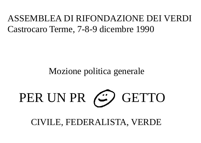 L’autonomia del soggetto politico verde è il pilastro di questa continua sperimentazione ed è la progressiva costruzione di un progetto culturale e politico. Un progetto civile, federalista e verde, che sappia coniugare la centralità ambientale (non solo emergenze, ma questione epocale) con la capacità di rispondere alla crisi della democrazia. Una ricerca all’interno delle istituzioni e delle forme attuali del potere per svelare le ragioni vere della loro impotenza, dei loro segreti, della loro inarrestabile perdita di credibilità.