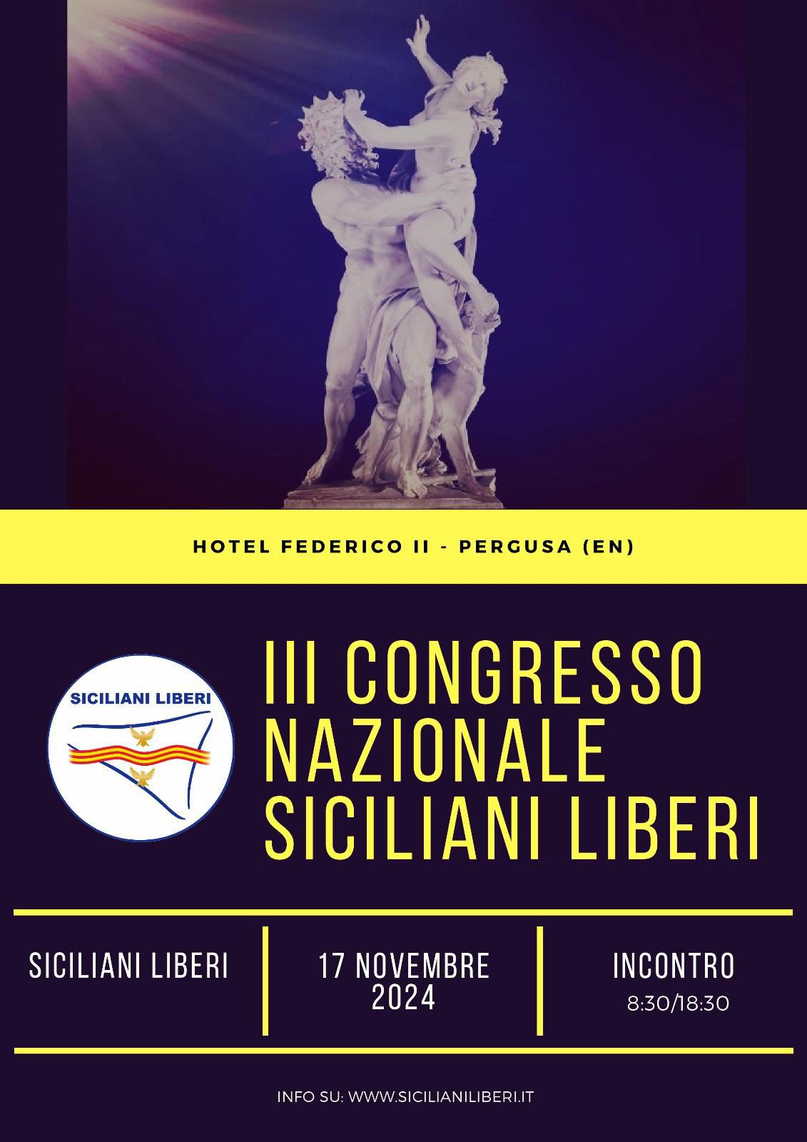 Domenica 17 novembre 2024, nella frazione di Pergusa, è convocato il 3° Congresso nazionale di Siciliani Liberi. L’Assemblea Nazionale ha nominato Presidente del Congresso l’iscritta Emilia Maggio e segretario organizzativo del Congresso l’iscritto Samuele Puglisi.