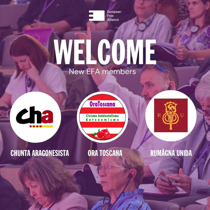 EFA ha accolto oggi tre nuovi movimenti regionali. Due di essi, Rumâgna Unida e OraToscana, sono forze sorelle di Autonomie e Ambiente, la rete italiana a cui fanno riferimento i movimenti territoriali attivi nella nostra Repubblica e che condividono i valori e la storia dell'Alleanza Libera Europea. Toscana e Romagna, due storiche regioni d'Europa, hanno ora un punto di riferimento in più nella politica europea. La terza forza politica è Chunta Aragonesista, una forza politica per l'autogoverno della storica Aragona, comunità autonoma del Regno di Spagna.