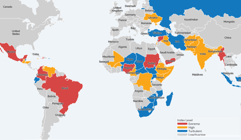 Nell'immagine a corredo del post, i conflitti più sanguinosi nel mondo nel 2024, fonte https://acleddata.com/conflict-index/