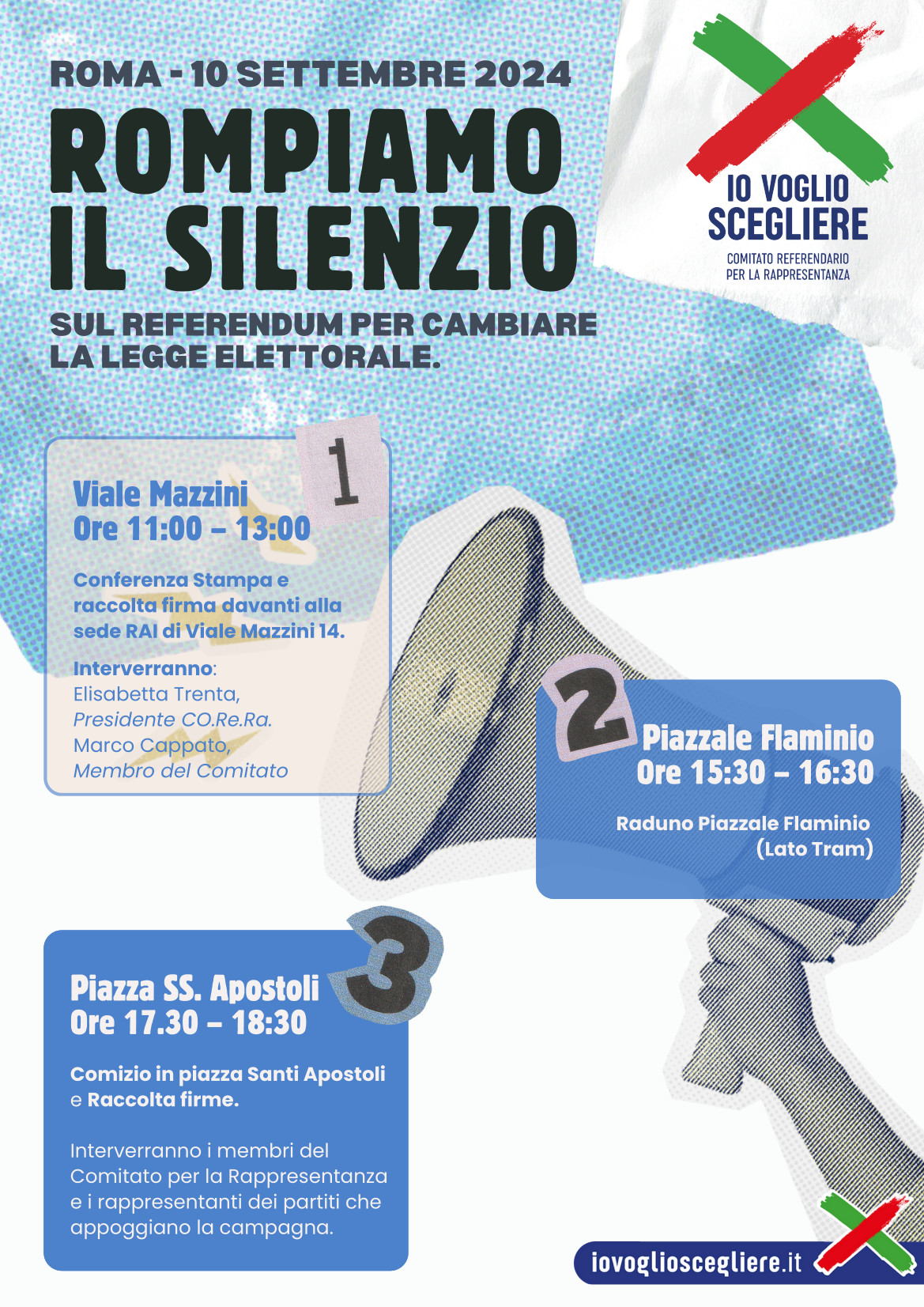 COMUNICATO STAMPA - GIORNATA PER ROMPERE IL SILENZIO sul referendum per cambiare la legge elettorale. ROMA, martedì 10 settembre 2024 Il Comitato Referendario per la Rappresentanza (CO.RE.RA.) orga…