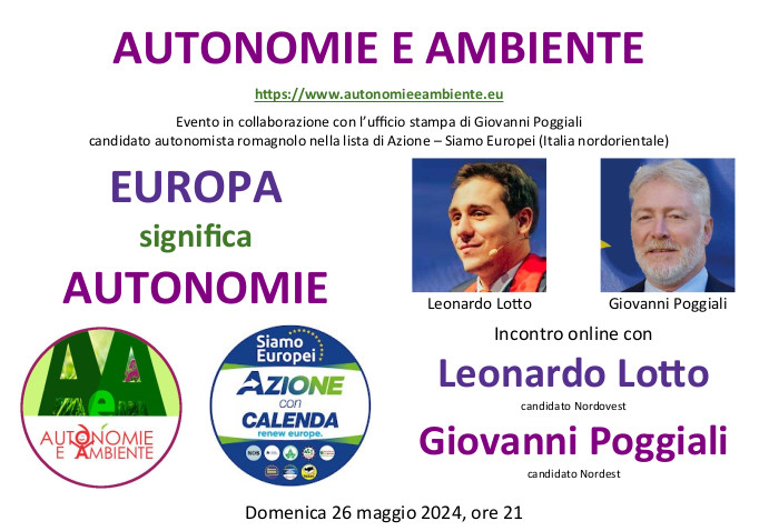 Riceviamo dall'ufficio stampa di GIOVANNI POGGIALI candidato autonomista nella circoscrizione Italia Nordorientale nelle liste di Azione - Siamo Europei alle prossime elezioni europee 8-9 giugno 2024…