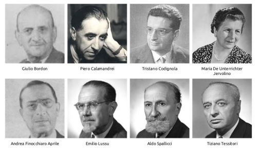 2) Piero Calamandrei (Firenze, 21 aprile 1889 – Firenze, 27 settembre 1956) è stato un politico, giurista e avvocato italiano, nonché uno dei fondatori del Partito d'Azione Nel 1945 fu nominato membro della Consulta Nazionale in rappresentanza del Partito d'Azione e successivamente venne eletto all'Assemblea Costituente. Volle sempre essere l’avvocato della Resistenza e della Costituzione e del suo essere toscano (suo l’aforisma “Toscana dolce patria nostra”) fece sempre una leva per promuovere europeismo, solidarietà internazionale, pace e giustizia come valori universali (https://it.wikipedia.org/wiki/Piero_Calamandrei).